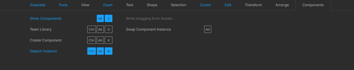 | Alt | Swap Components Instance | Поменять компоненты местами |
