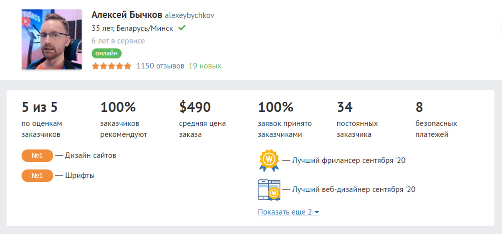 Прошарился в продажных лендах полного цикла. Научился понимать хороший перед тобой текст или ни о чем, так как много общался с хорошими копирайтерами, обсуждали все — митинги устраивали. Ну и, прокачал свой аккаунт на бирже до топ 5 по дизайну, работая в офисе.