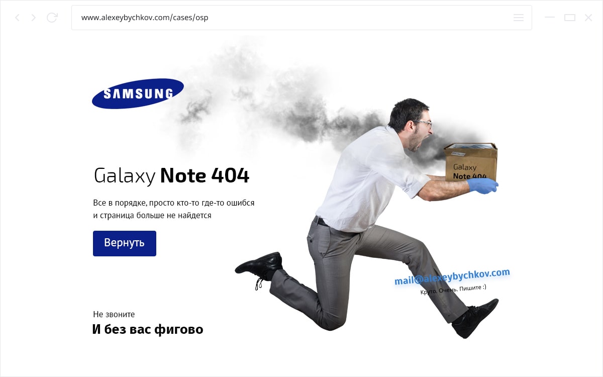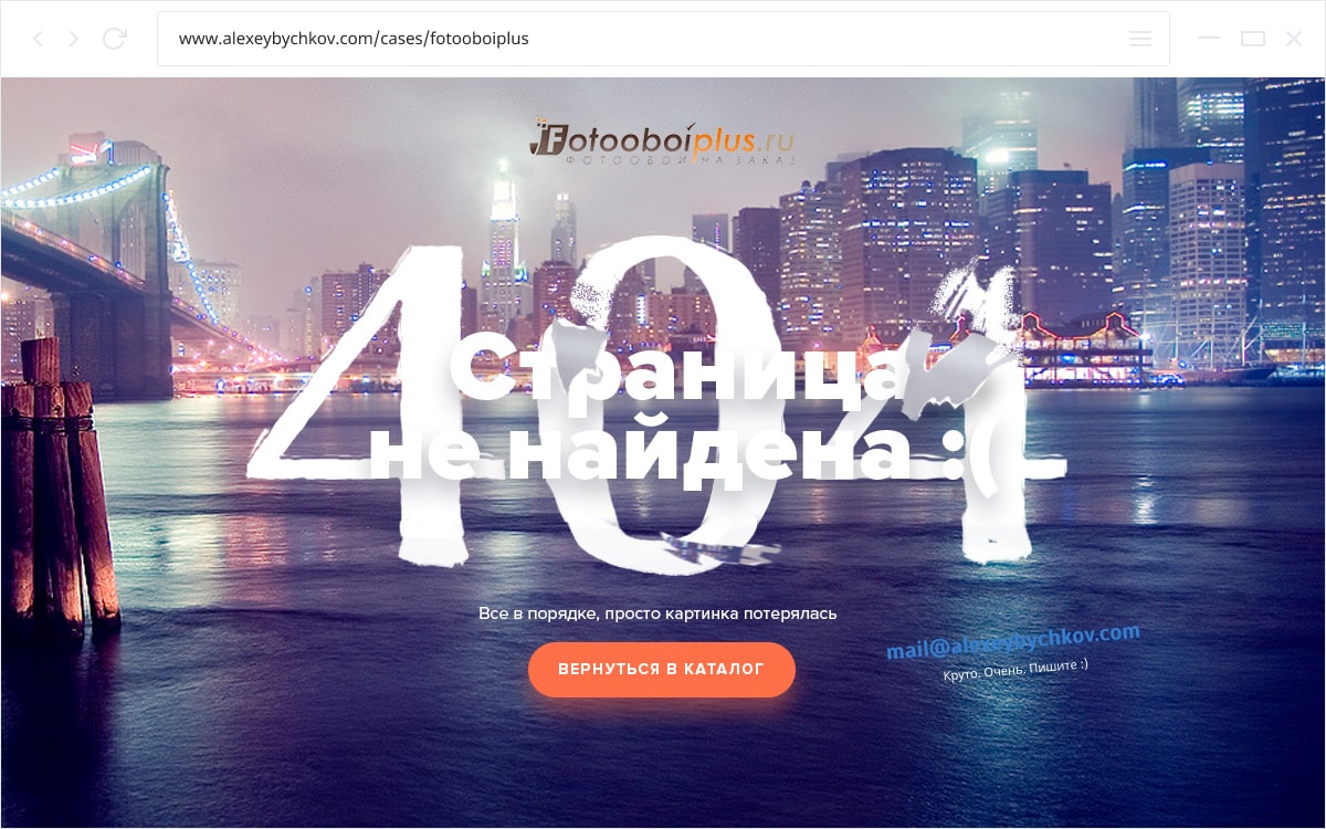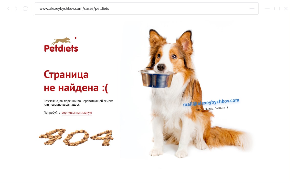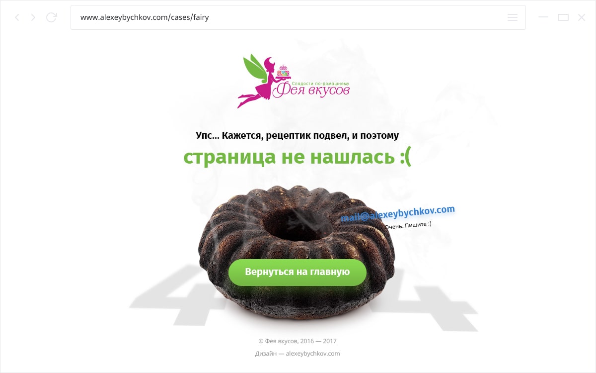- На сайте вкусных тортиков на странице с ошибкой у меня все сгорело.