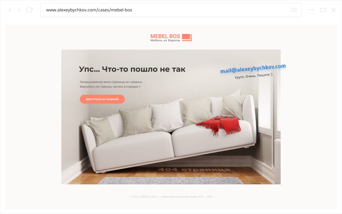 - Если на сайте можно купить клевый удобный диван — то на странице с ошибкой он, конечно же, не влезет.