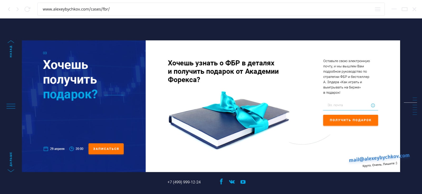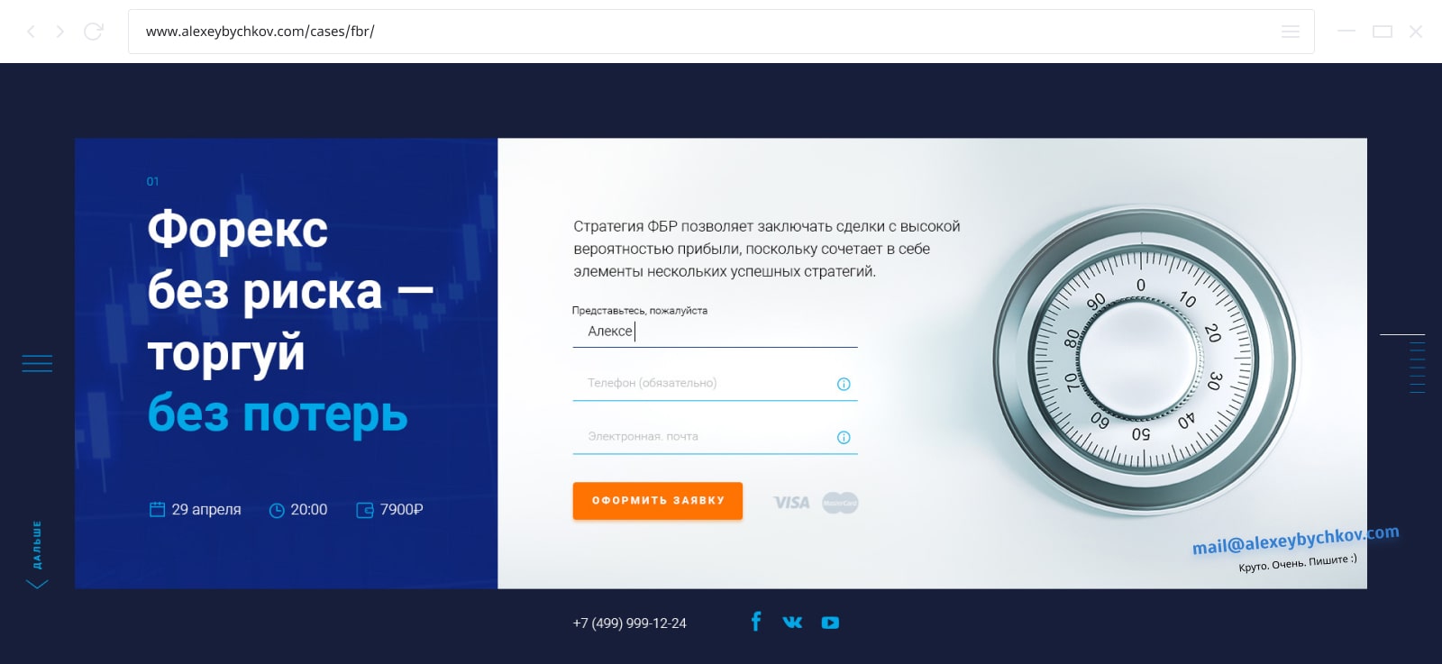 Сделай круто, очень! Все должно выглядеть дорого, круто, но не кичливо. И главное: название лендинга ФБР — форекс без риска, никаких ассоциаций с FBI быть не должно.