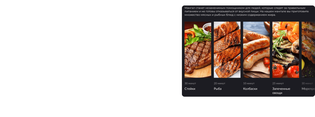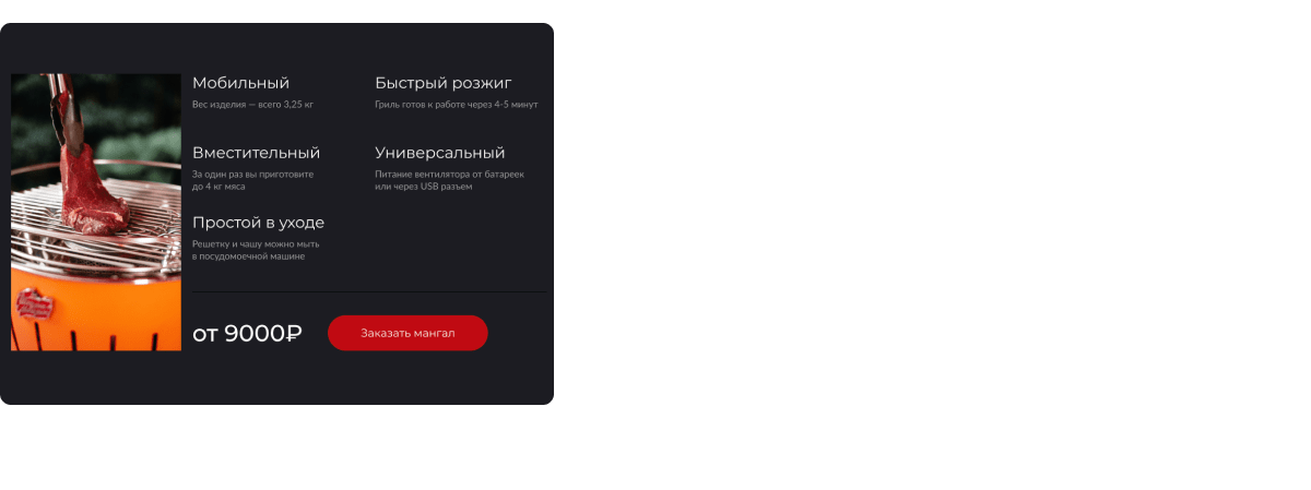 Необходимо разработать продающую страницу в темных тонах. Были предоставлен текст и фотографии: