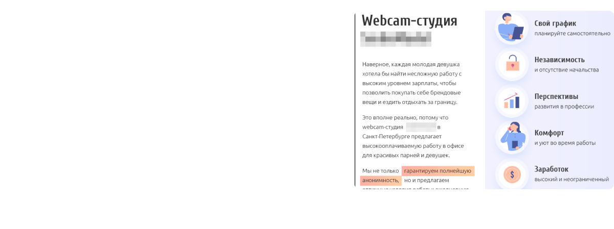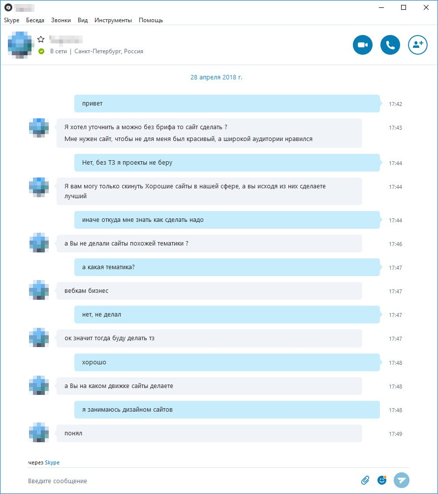 Я отказался от проекта. Но случайно в тот же вечер наткнулся на недавний отзыв другому дизайнеру как раз по вебкам тематике. Предложил заказчику обратиться к нему: